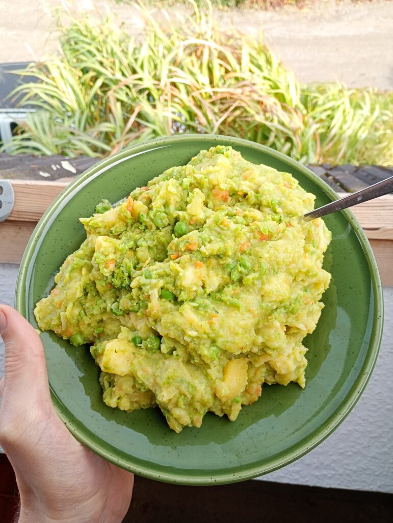 Zutaten: 500g-1000g Kartoffeln, TK Gemüse nach Wahl, 400g
